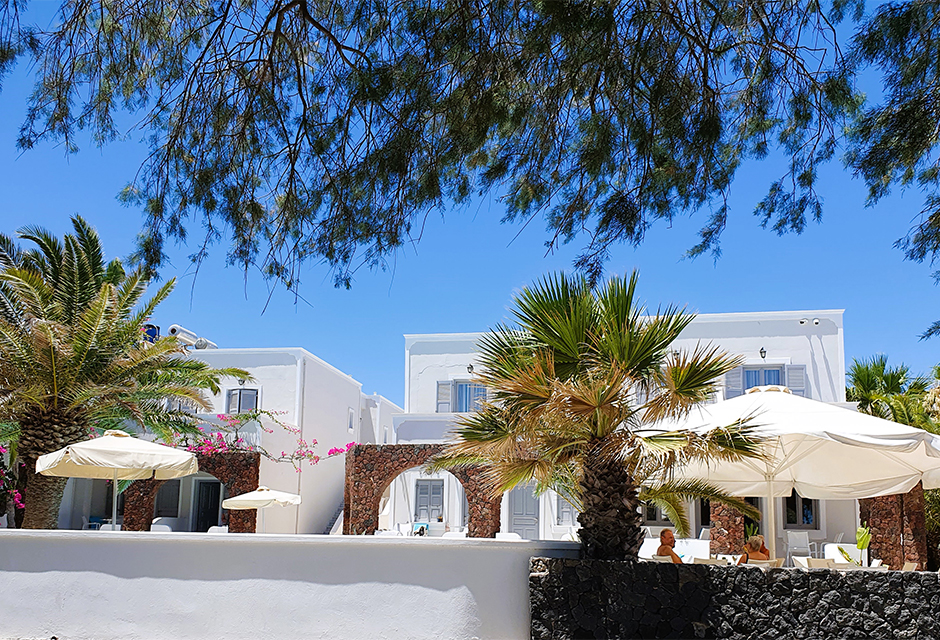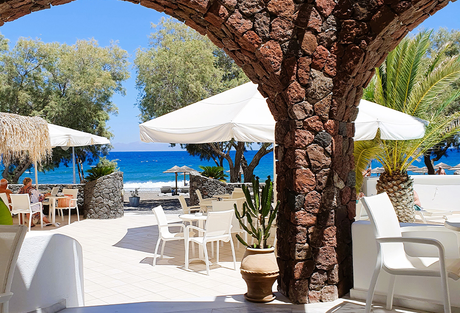 set on the edge of the picturesque village of Kamari on the east side of the island, right in front of the endless black beach...